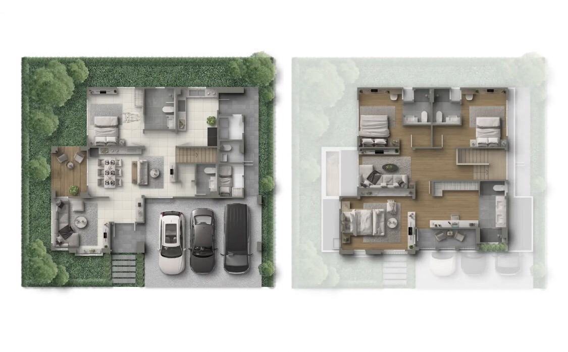 特点: 小型私人花园或庭院,停车位,通常有多个卧室和更大的起居空间