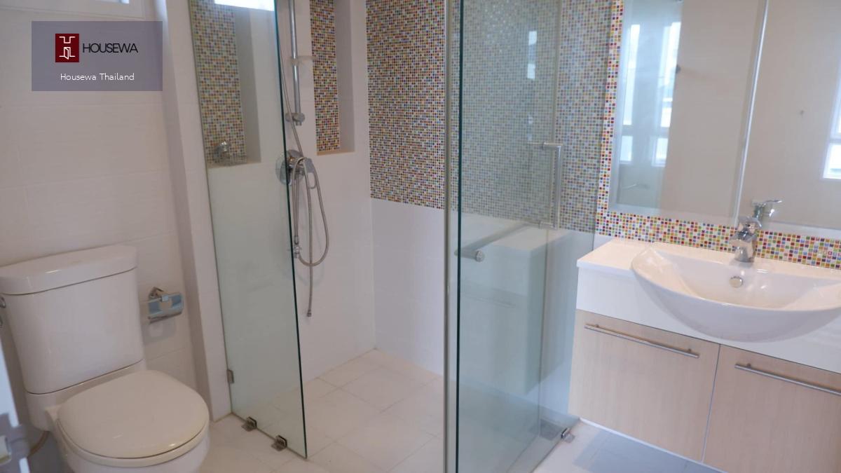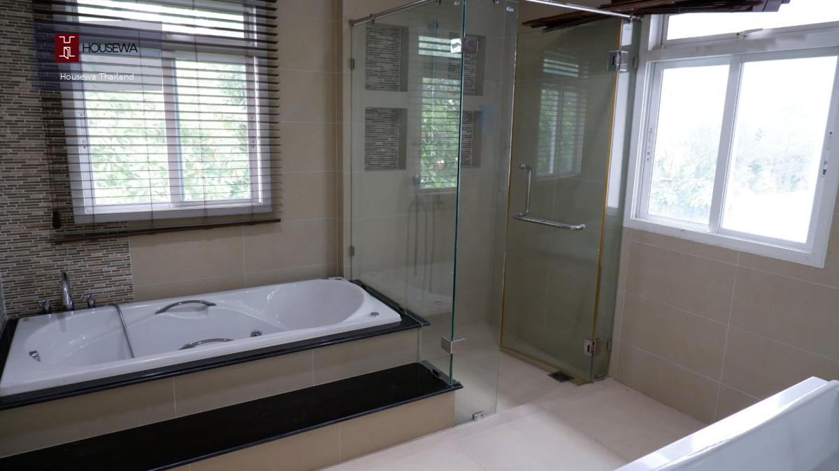 – ห้องน้ำสุขภัณฑ์ครบ พร้อมอ่างอาบน้ำ และฉากกั้นกระจกนิรภัย