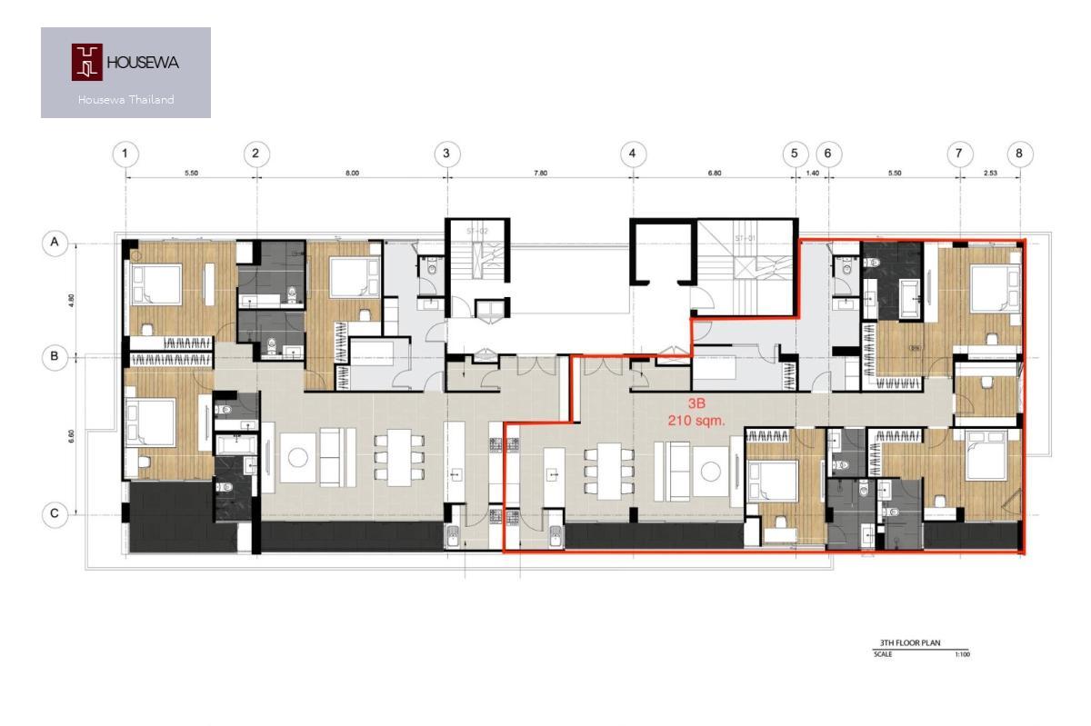 3 ห้องนอน 4 ห้องน้ำ | ขนาด 205 ตร.ม. | ราคา 155,000 บาท/เดือน