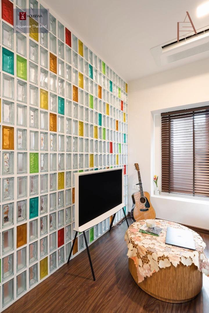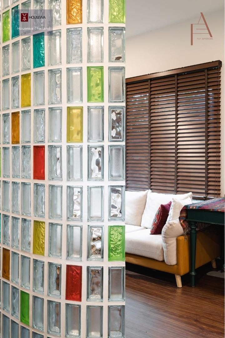 – The Iconic Glass Block: ผนังบล็อกแก้วโค้ง เล่นระดับสีสัน ช่วยแบ่งสเปซแบบเป็นส่วนตัว แต่ยังโปร่ง รับแสงธรรมชาติ