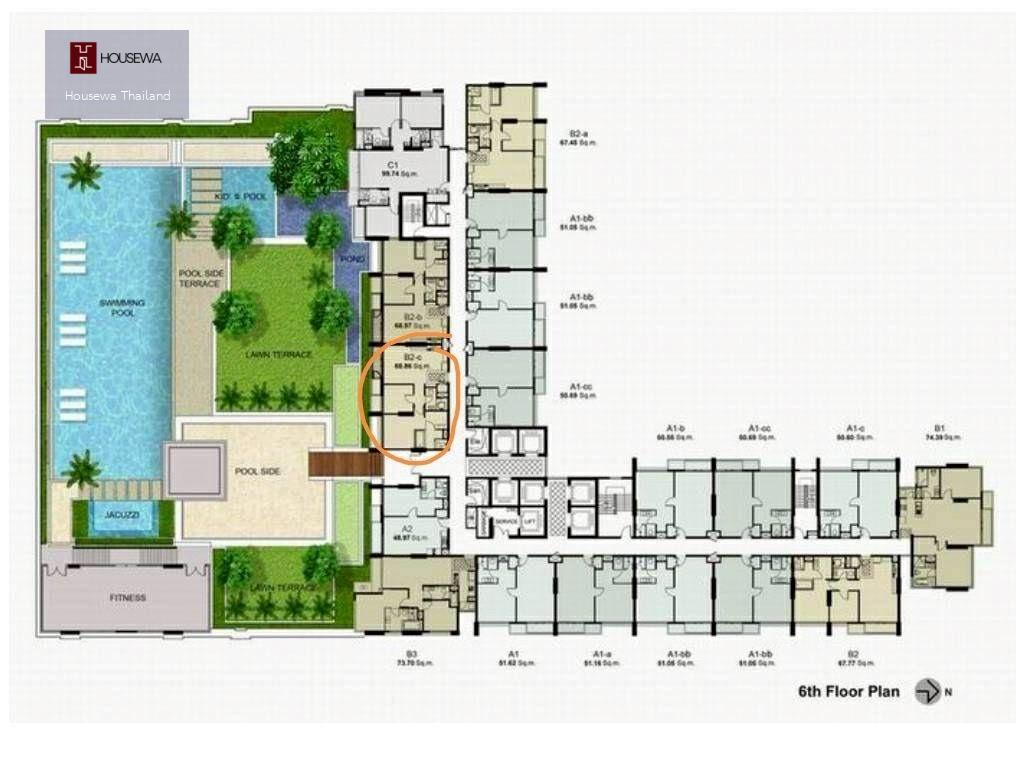 Located on the 6th floor (pool level), the unit features a large private balcony surrounded by plants and trees, creating a peaceful, green atmosphere. It is not too close to the pool or gym, so you still enjoy great privacy and quiet living.